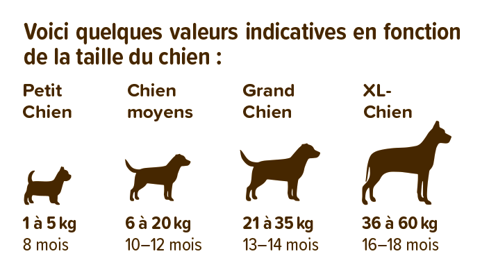 Plus le chien est de petite race, plus vite il a terminé sa croissance et peut passer à la nourriture pour adultes.